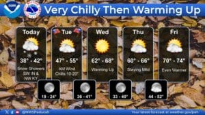 Cold start will give way to warming temperatures, and return of rain for the weekend