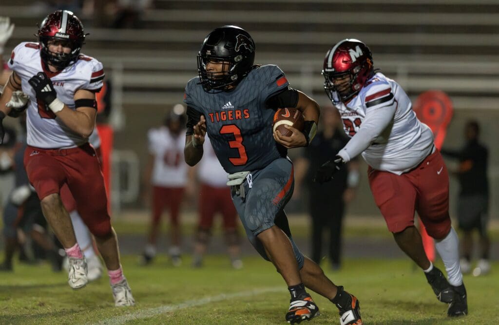 The McCracken Co. Mustangs defeated The Hopkinsville Tigers 59 to 56 on Friday night at the Stadium of Champions in a 6A 1st District matchup.
