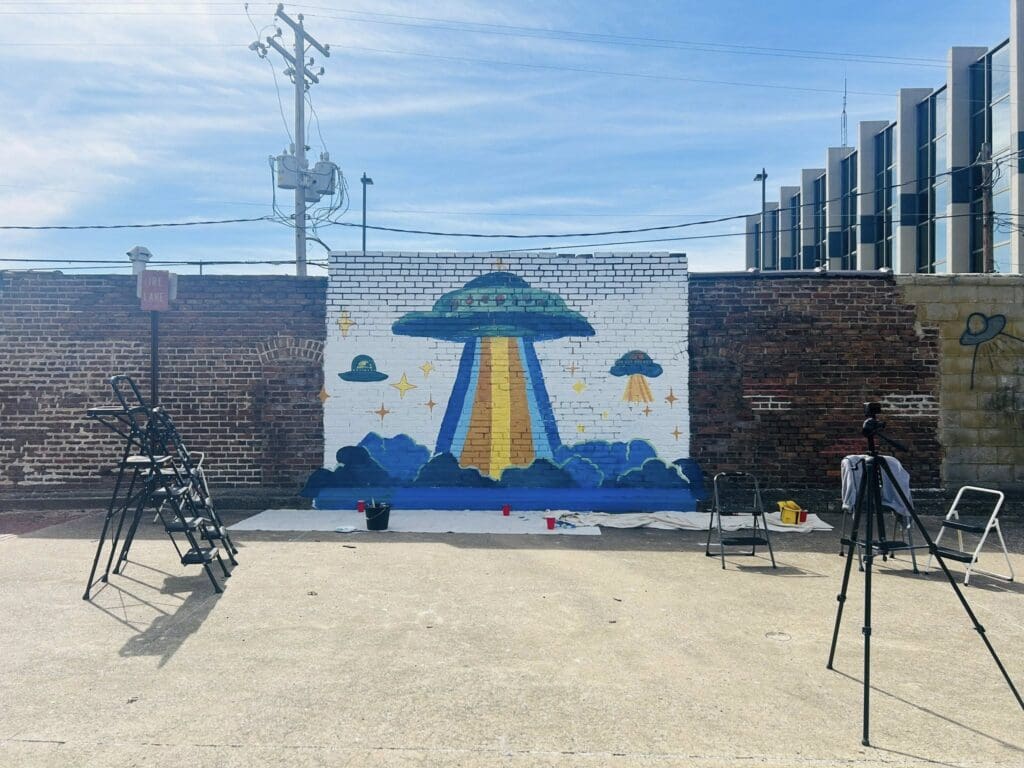 The students transformed two blank walls in downtown Hopkinsville, located at Byers & Harvey Real Estate and Property Management, with one showcasing a vibrant sign of Hopkinsville and another highlighting the area’s history with the extraterrestrial.