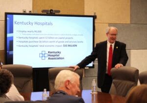 Kentucky Hospital Association Senior Vice President of Policy and Government Relations Jim Musser spotlighted healthcare’s impact on economic development at Thursday’s Christian County Chamber of Commerce Learn and Thrive event.