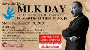 This is a time-honored tradition in Hopkinsville, and Executive Director Raychel Farmer invites the community to participate, with the march set to begin at Freedom Elementary School at 9 a.m. that morning. It will make its way over to Hopkinsville Community College, where a program featuring local youth will take place in the auditorium building.