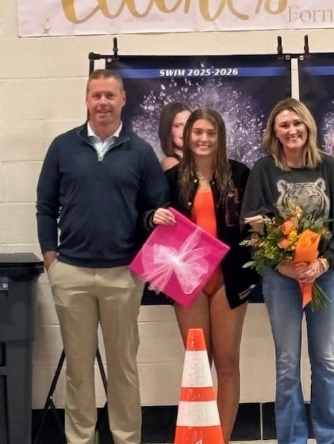 Cansler celebrated by helping the Lady Tigers’ 200-yard freestyle relay and 200-yard medley relay team take first-place. The freestyle relay team of Saralynn Major, Kaley Bangart, Lily Johnston, and Cansler finished in 2:04.52 and the medley relay team of Cansler, Brilyn Merrick, Johnston, and Major had a time of 2:15.61 Individually, Cansler also won the 100-yard breaststroke in 1:19.41.