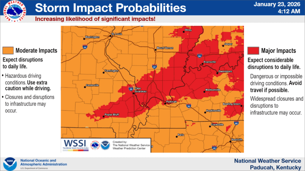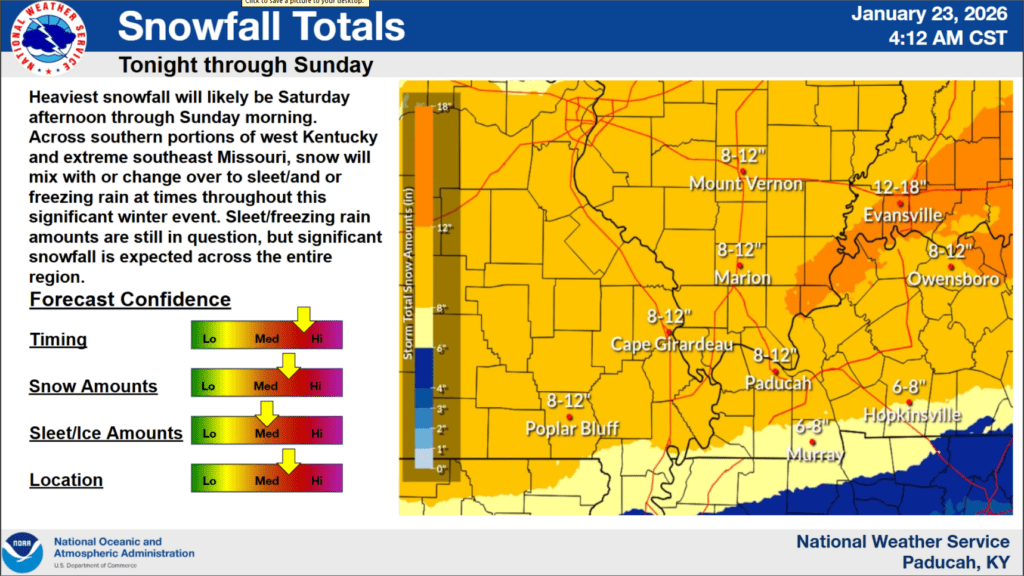 And some things have change as this winter weather system is set to start impacting the region late tonight and then linger through Sunday afternoon, as the chances for ice accumulations have increased for Christian, Todd, Trigg and surrounding counties. Warning Coordination Meteorologist Christine Wielgos with the National Weather Service in Paducah says this is the trickiest part of this forecast—determining where the line between heavy snow and sleet or freezing rain will set up.