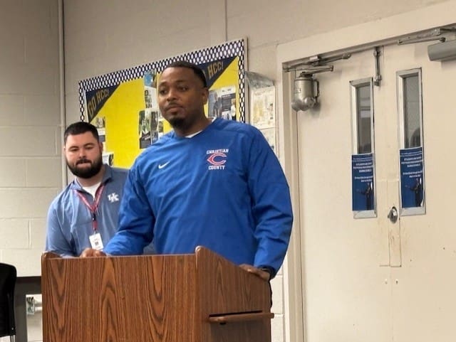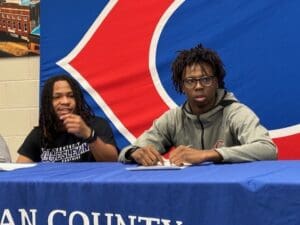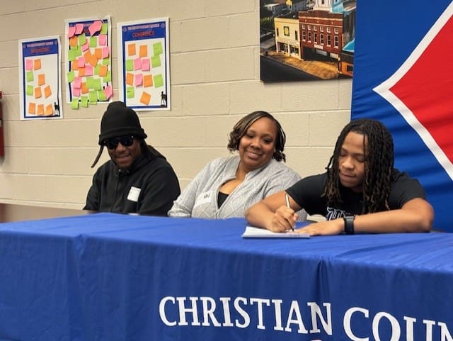 A pair of Christian County High School athletes signed letters-of-intent to play college football during a ceremony Thursday afternoon in front of friends, family, and teammates in the school’s media center.