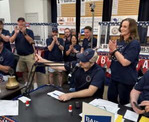 The final item was a country ham, and Auction Chair Brett Pritchett sold it to fellow Rotarian Whitney Stewart, who was then announced as the chair for the next auction.