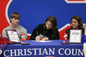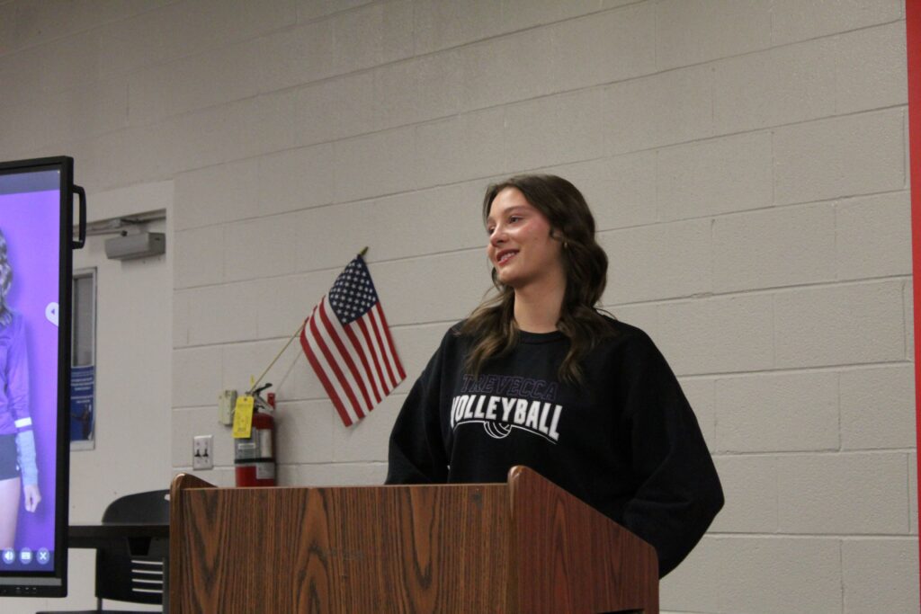 The senior volleyball player signed a letter-of-intent to play college volleyball at Trevecca Nazarene during a ceremony at the high school media center in front of family, friends, and teammates.