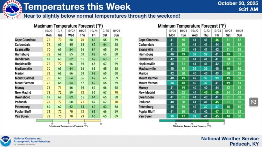 Lower than normal temperatures to remain during the week