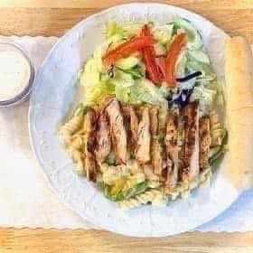 Wednesday is for creamy chicken Alfredo pasta. Rotini pasta is tossed with our delicious homemade Alfredo sauce. Grilled chicken strips finish the pasta along with a salad and side of ranch dressing and a garlic breadstick! Yum! $12.00 per person.