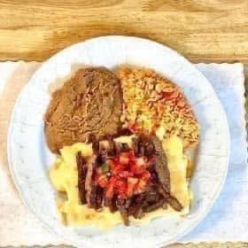 Thursday is for a TexMex treat. Cheese enchiladas are finished with grilled steak strips and served with rice, refried beans and sides of fresh salsa and pico de gallo! Yummy! $13.00 per person