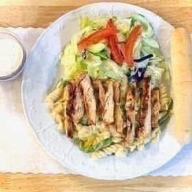 Wednesday is for creamy Alfredo pasta. Rotini pasta is tossed with homemade Alfredo sauce and topped with grilled chicken strips. A salad, side of ranch and breadstick finish the dish. Delish! $13.00 per person