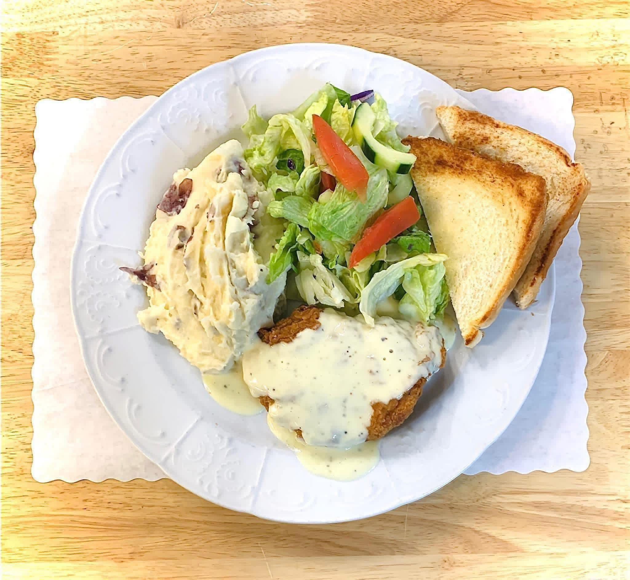 Monday is for Southern comfort food. Crispy chicken breasts are served with a side of homemade gravy, creamy mashed potatoes and a side salad with ranch dressing. Texas toast for the finish! $13.00 per person